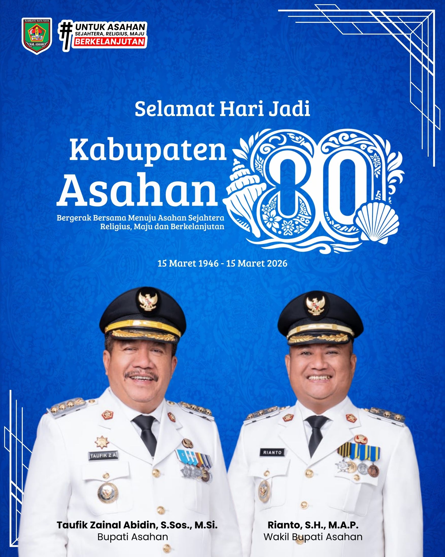 Semoga di usia yang ke-80 ini, Kabupaten Asahan semakin berkembang, masyarakatnya semakin sejahtera, serta pembangunan terus berjalan menuju daerah yang Sejahtera, Religius, Maju, dan Berkelanjutan.