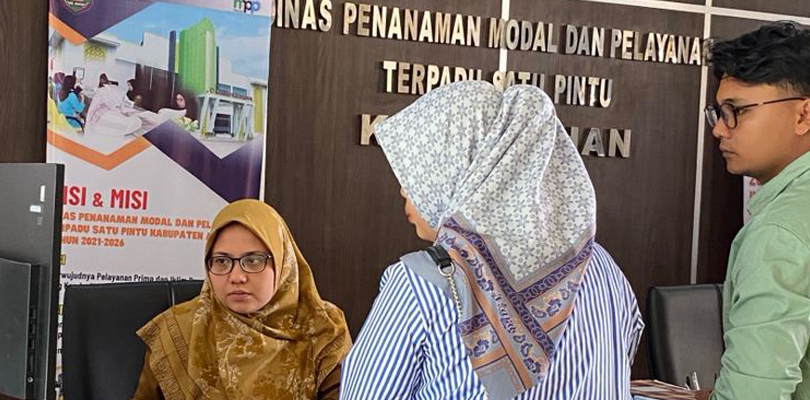 Staf Pelayanan sedang memberikan pelayanan kepada masyarakat yang mengajukan permohonan Izin