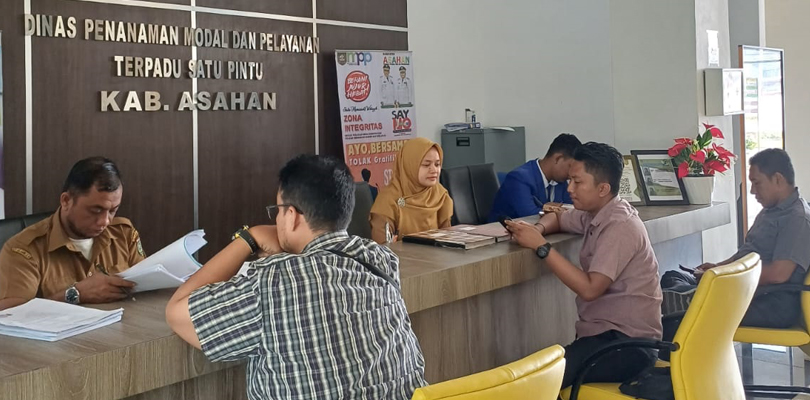 Staf Pelayanan sedang memberikan pelayanan kepada masyarakat yang mengajukan permohonan Izin