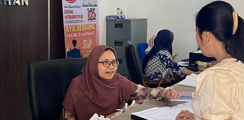 Staf Pelayanan sedang memberikan pelayanan kepada masyarakat yang mengajukan permohonan Izin