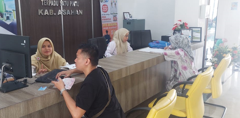 Staf Pelayanan sedang memberikan pelayanan kepada masyarakat yang mengajukan permohonan Izin