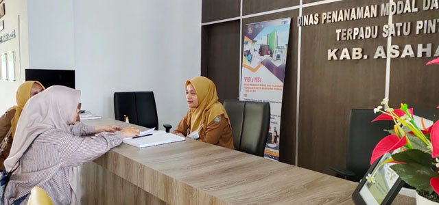 Staf Pelayanan sedang memberikan pelayanan kepada masyarakat yang membutuhkan informasi permohonan Izin