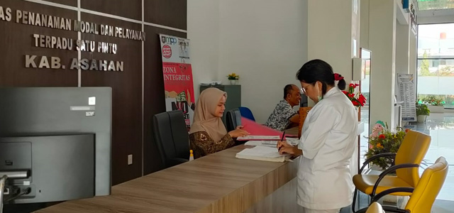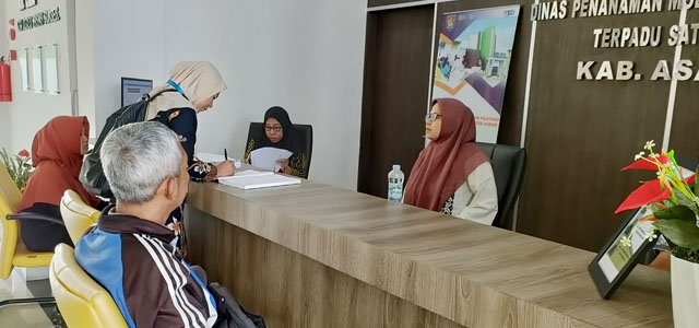 Staf Pelayanan sedang memberikan pelayanan kepada masyarakat yang mengajukan permohonan Izin