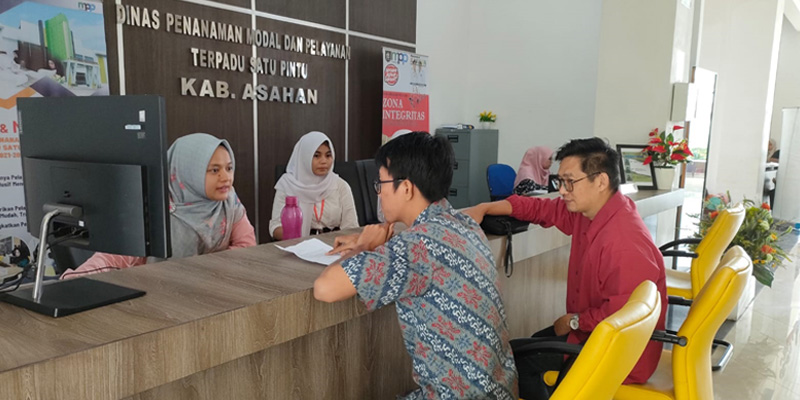 Staf Pelayanan sedang memberikan pelayanan kepada masyarakat yang mengajukan permohonan Izin