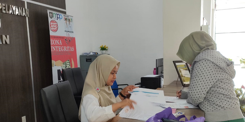Staf Pelayanan sedang memberikan pelayanan kepada masyarakat yang mengajukan permohonan Izin
