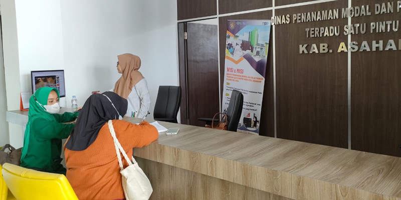 Staf Pelayanan sedang memberikan pelayanan kepada masyarakat yang mengajukan permohonan Izin