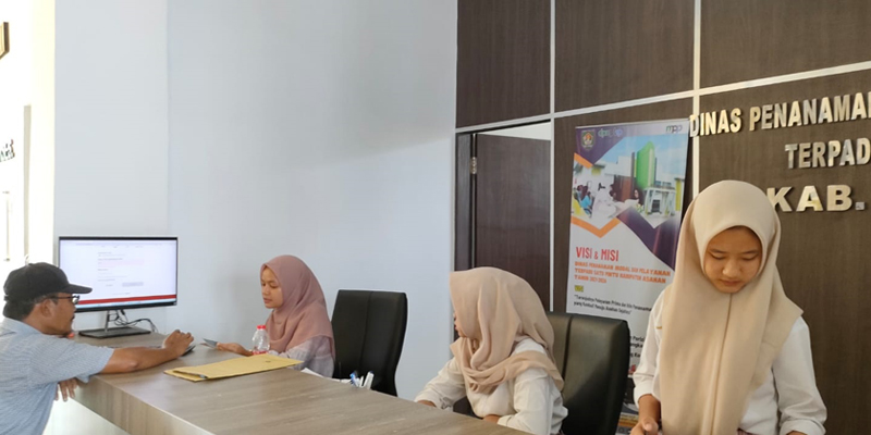 Staf Pelayanan sedang memberikan pelayanan kepada masyarakat yang mengajukan permohonan Izin
