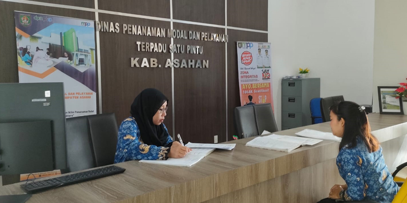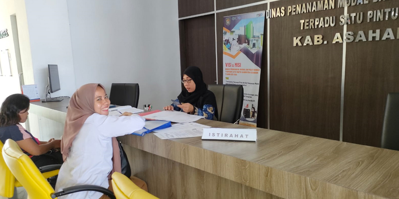 Staf Pelayanan sedang memberikan pelayanan kepada masyarakat yang mengajukan permohonan Izin