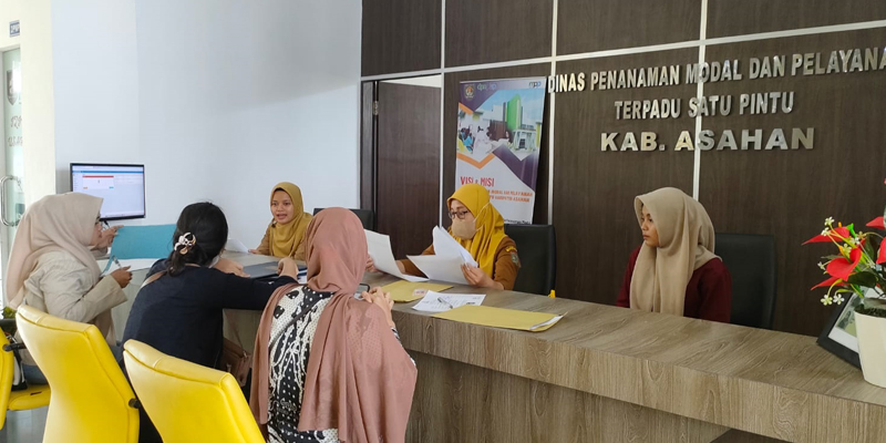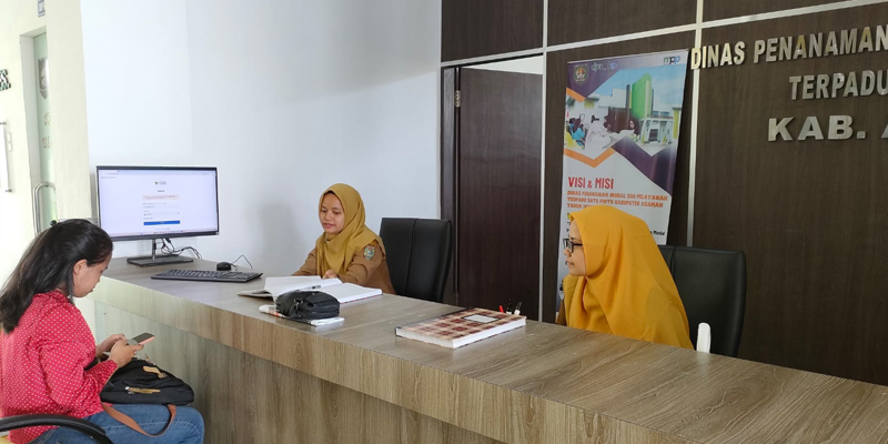 Staf Pelayanan sedang memberikan pelayanan kepada masyarakat yang mengajukan permohonan Izin