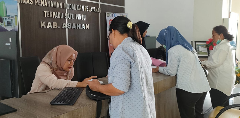 Staf Pelayanan sedang memberikan pelayanan kepada masyarakat yang mengajukan permohonan Izin