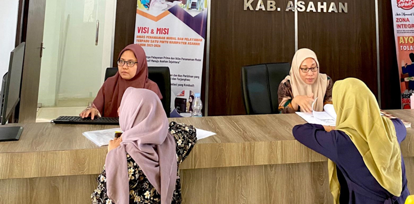 Staf Pelayanan sedang memberikan pelayanan kepada masyarakat yang mengajukan permohonan Izin