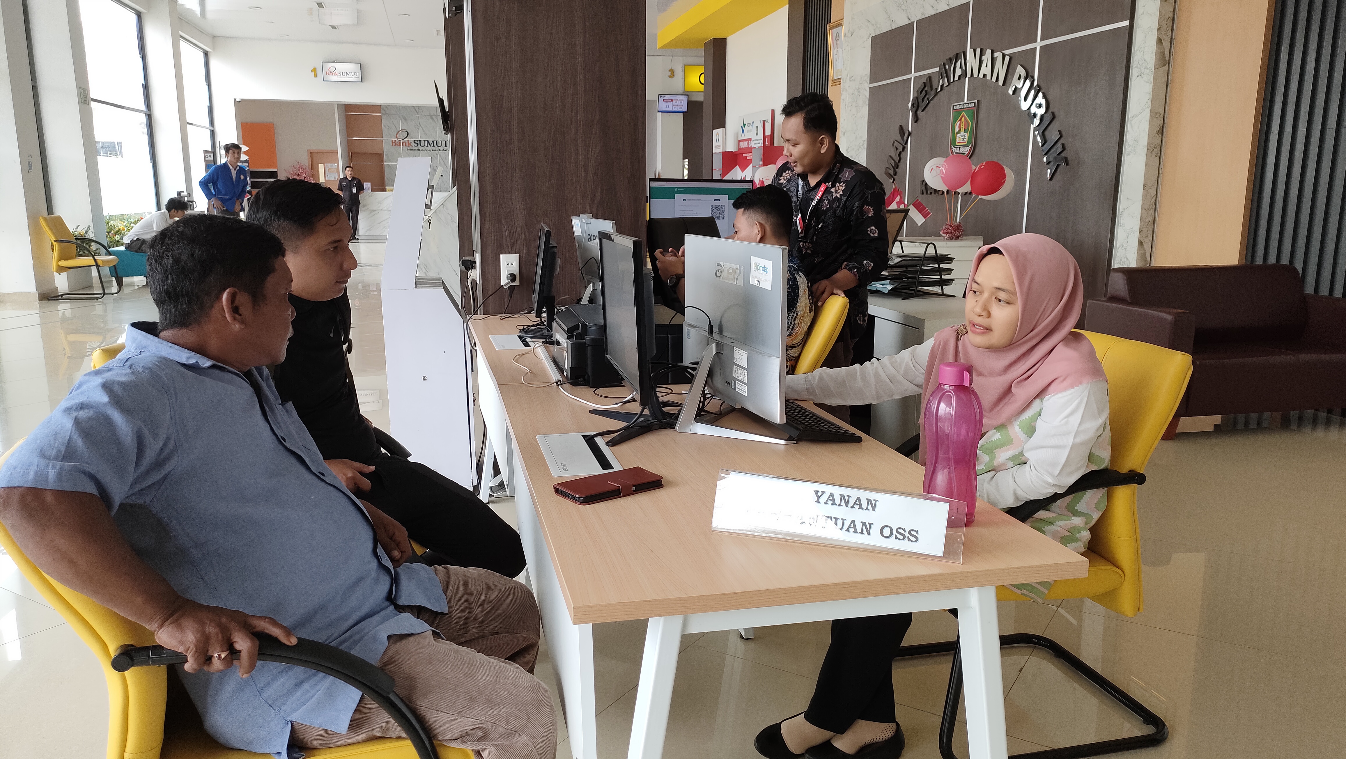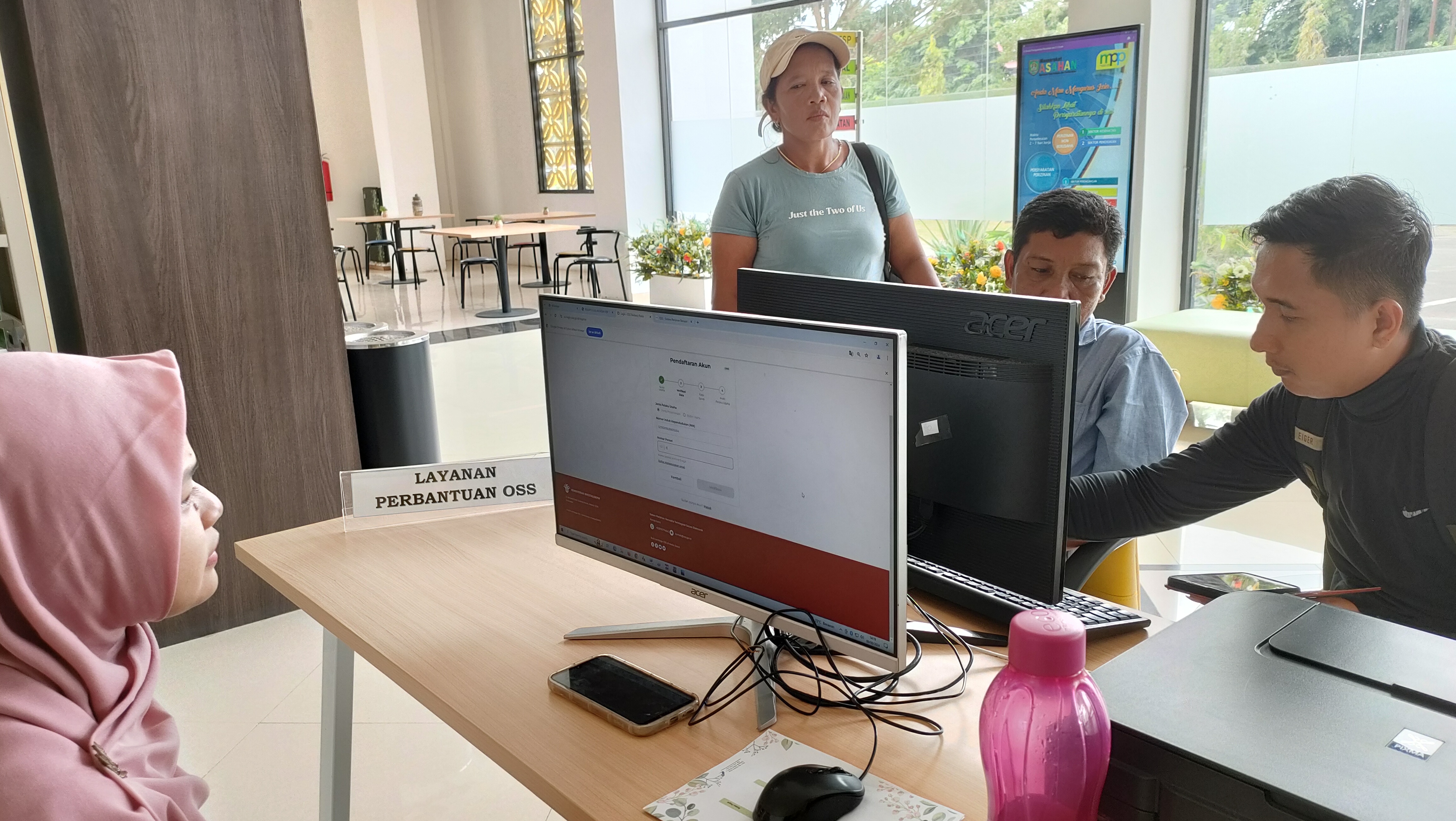 Petugas Layanan DPMPTSP Kabupaten Asahan sedang melakukan pendampingan dan perbantuan penerbitan Izin Berusaha melalui sistem OSS RBA yang dilakukan