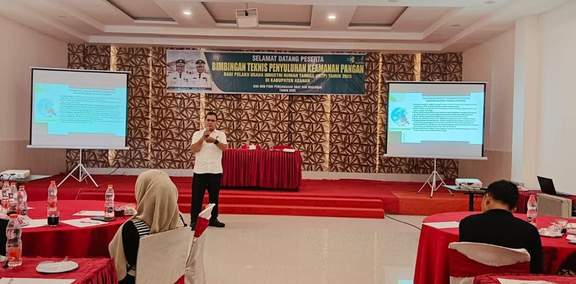 Penyampaian Materi Perizinan Berusaha oleh Kadis DPMPTSP Kab. Asahan yang dalam hal ini diwakili oleh Bapak DTM. Sofyan, S.S (Penata Perizinan Ahli Madya) pada kegiatan Bimtek/Penyuluhan Keamanan Pangan bagi pelaku usaha Industri Rumah Tangga Pangan yang dilaksanakan oleh Dinas Kesehatan Rabu, 18 Juni 2025 | Tempat : Hotel Marina Kisaran
