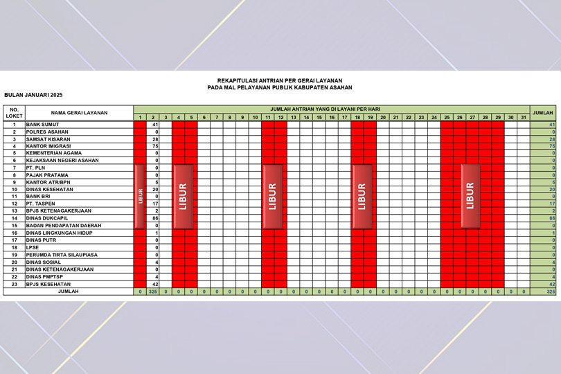 Rekapitulasi Antrian Pengunjung Layanan MPP Asahan