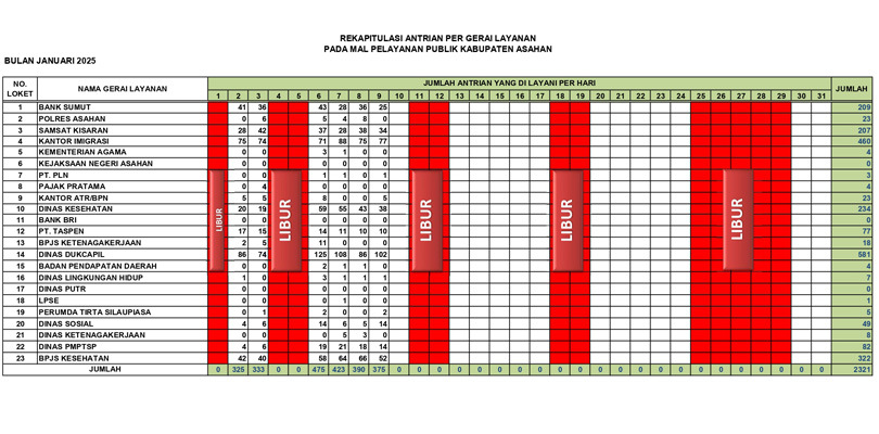 Rekapitulasi Antrian Pengunjung Layanan MPP Asahan