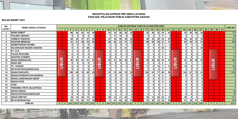 Rekapitulasi Antrian Pengunjung Layanan MPP Asahan